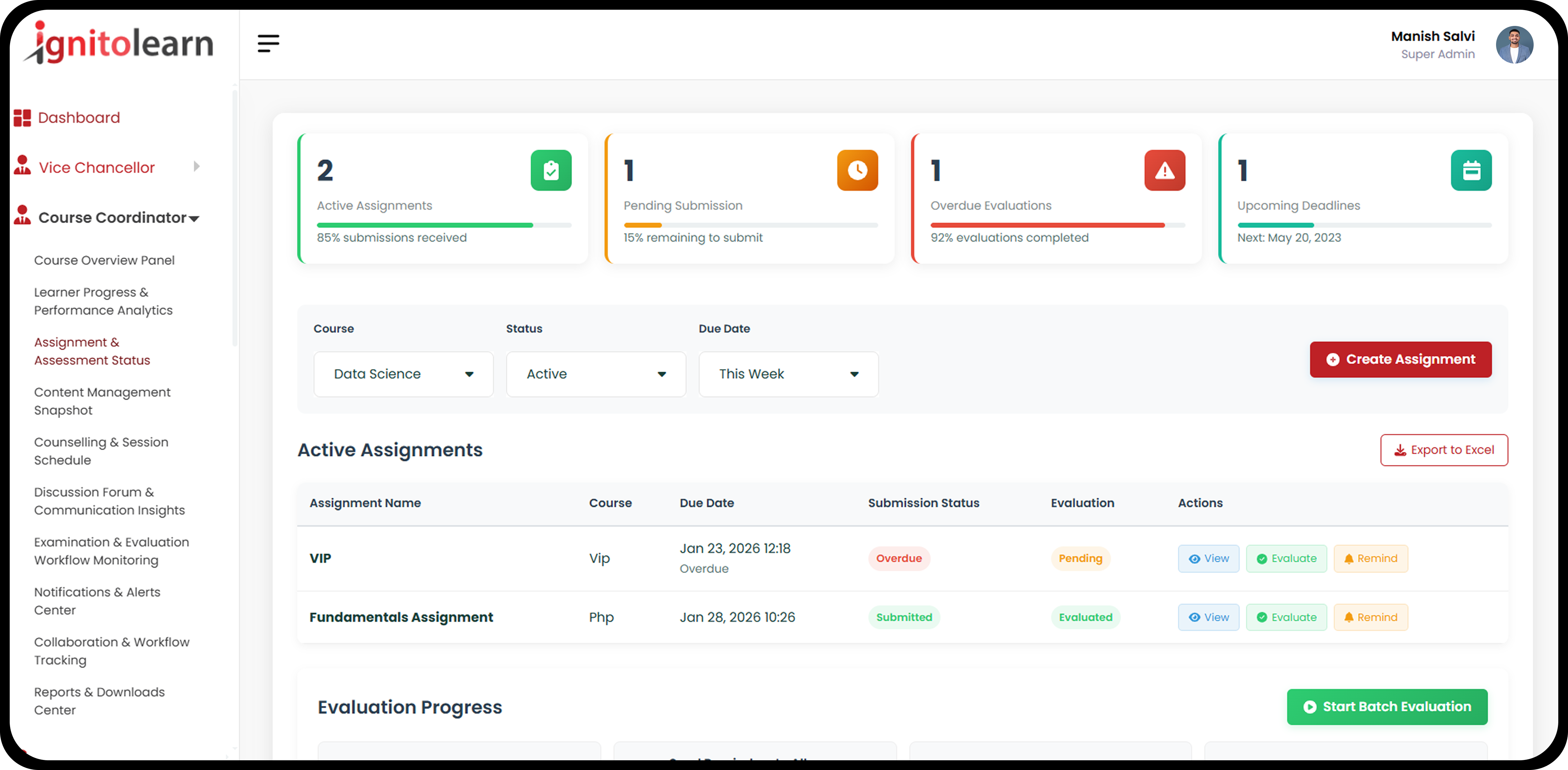 Dashboard For Course Coordinator